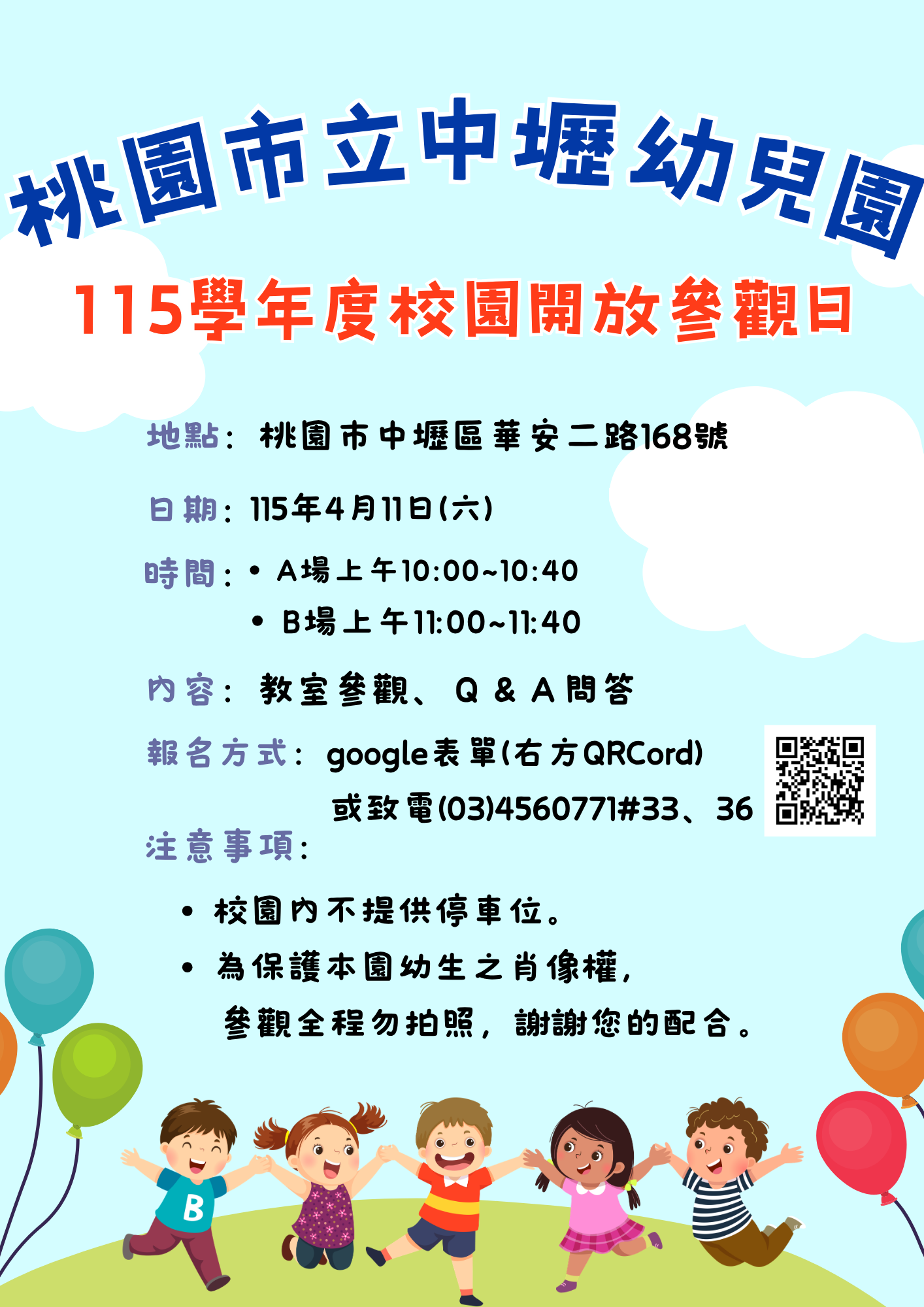 115學年度❰新生校園開放參觀日❱來囉! ♡歡迎想了解中壢幼兒園的大朋友、小朋友來參加♡